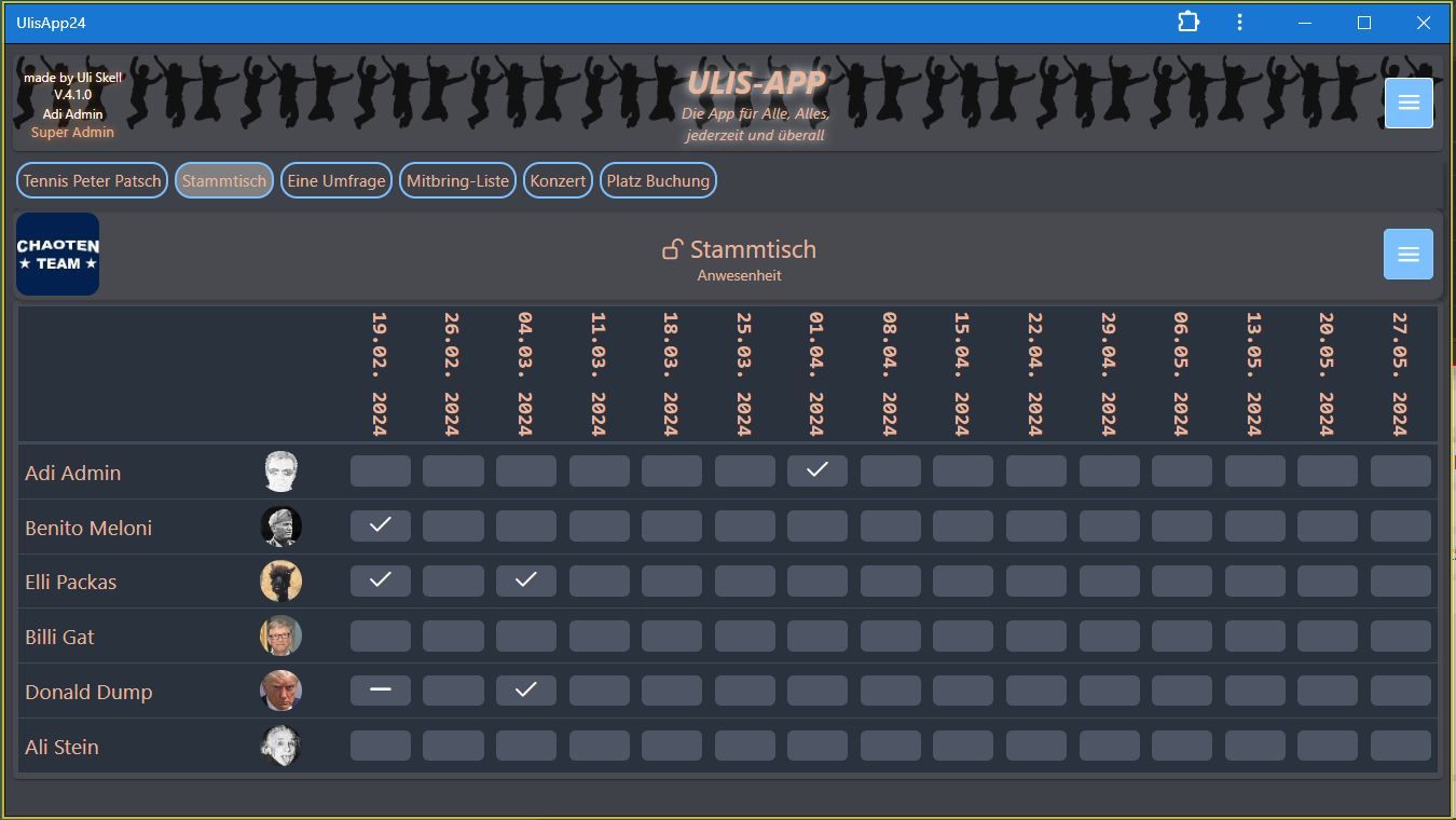 Karin kann heute nicht zum Kaffee-Klatsch zu den Freundinnen, es ist was wichtiges dazwischengekommen. Sie hat sich bei Uli's App ausgetragen damit alle Bescheid wissen.